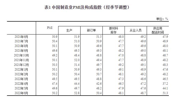统计局:6月官方制造业PMI为50.2% 重回临界点以上