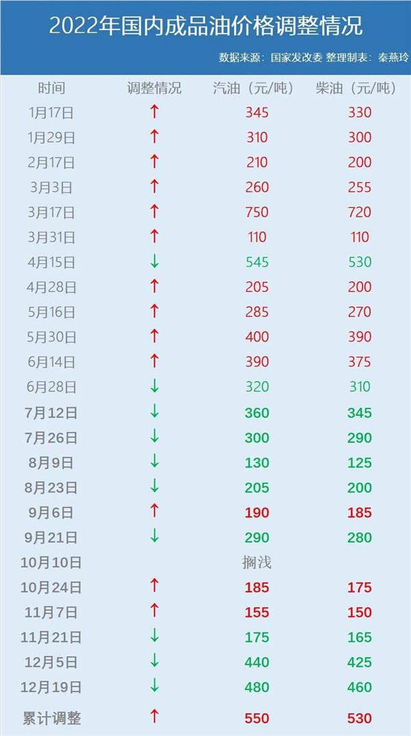 截至目前,今年国内油价已进行过23轮调整,总体呈现“13涨9降1搁浅”格局,此轮调整之后,今年国内油价调整将以“三连降”收尾,同时也基本跌去今年上半年的累计涨势,相较年初,国内汽、柴油价分别累计上涨550元和530元。 织梦内容管理系统