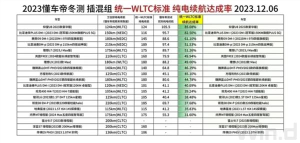 其中,严寒情况下的混动车型纯电续航达成率,约20个车型参加测试。其中,比亚迪仰望以85.08%的续航达成率排名第一,华为、赛力斯联合打造的问界M7增程版倒数第一,只有31.6%。此外,吉利、长城旗下的多款车型在测试中续航达成率均不到40%。 内容来自dedecms