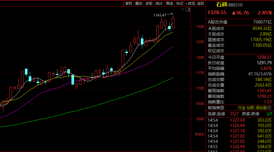 AH能源股联袂走强,A股石油板块指数最高涨近4%,创2015年6月以来,近9年新高。通源石油、潜能恒信20%涨停,准油股份、和顺石油等涨停或涨超10%。中国海油创历史新高,中国石油创近9年新高。 内容来自dedecms