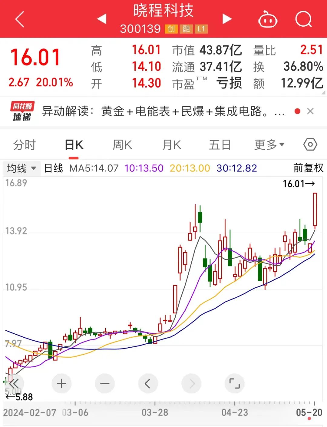 黄金、白银板块同样交投活跃,晓程科技20cm涨停,湖南白银、盛达资源、白银有色等多股涨停;黄金股票ETF涨4.29%,黄金股ETF高开涨超4%。