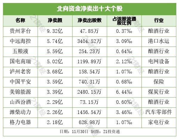 据21投资通(微信号ID:touzit21)智能监测,11月30日,北向资金净卖出34.11亿元,其中沪股通净卖出21.85亿元,深股通净卖出12.25亿元。 织梦内容管理系统