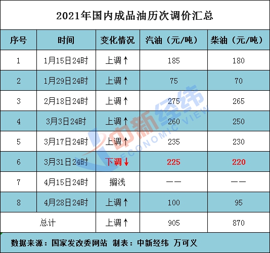据中新经纬客户端统计,此前,国内成品油在今年已历经八个调价窗口,如果此次价格上调落实,2021年成品油调价将呈现“七涨一跌一搁浅”的格局。 copyright dedecms