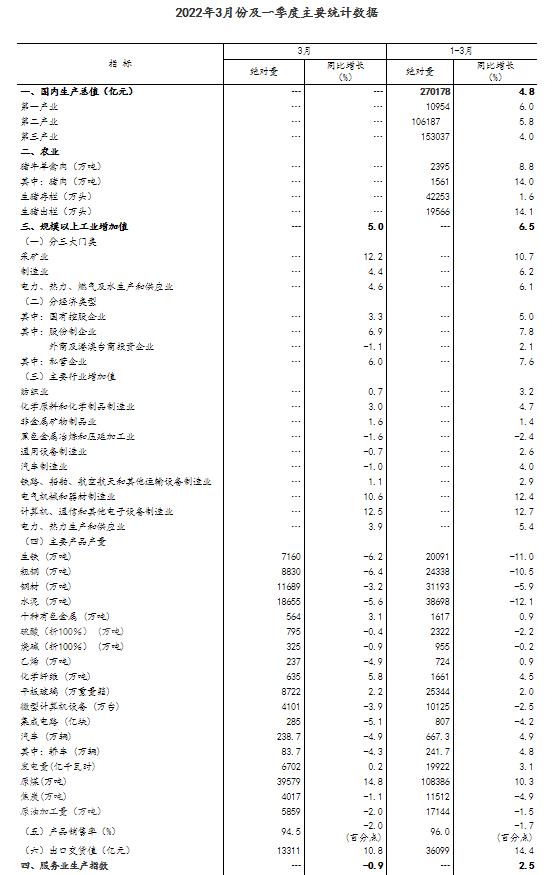 一季度,面对国际环境更趋复杂严峻和国内疫情频发带来的多重考验,在以习近平同志为核心的党中央坚强领导下,各地区各部门认真贯彻落实党中央、国务院决策部署,科学统筹疫情防控和经济社会发展,坚持稳字当头、稳中求进,国民经济延续恢复发展态势,经济运行总体平稳。