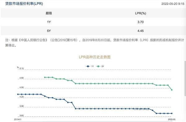 5月20日,最新公布的贷款市场报价利率(LPR)结果显示,1年期LPR报3.7%,与上次持平;5年期以上品种报4.45%,上次为4.6%,较上次下降0.15个百分点。 织梦内容管理系统