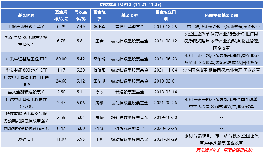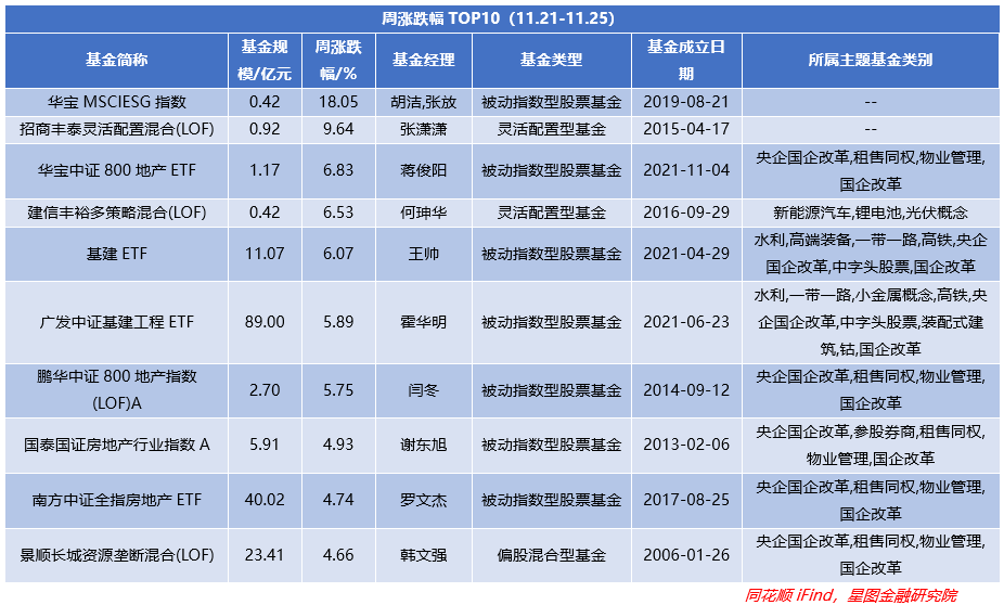 从涨跌幅(A/C基金以A类或排名靠前为准,QDII美元/人民币以排名靠前为准)TOP10来看,被动指数型基金同样为7只,剩余3只均为主动权益型基金;且相关基金也主要是地产、央国企改革、中字头股票。整体涨幅则出现下滑至-1.51%,环比-2.29pct,由正转跌。最高涨幅大增6.59pct至18.05%,为华宝基金旗下基金。 dedecms.com
