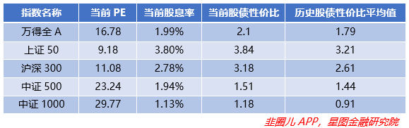 从3年股债性价比来看,截至11月25日,万得全A市盈率倒数与十年期国债(2.83%)的比值为2.1,环比-0.07,而历史均值为1.79,处于近3年的高位,历史分位值位置处于79.72%(即性价比高于79.72%的时间),环比-1.25pct。上证50、沪深300、中证500和中证1000的股债性价比历史分位值分别处于81.46%(环比-4.39pct)、86.13%(环比-2.88pct)、53.19%(环比+0.56pct)和82.61%(环比+3.47pct)。较上期来看,整体上投资性价比继续小幅回落,债券利率再次小幅上涨0.02%,随着降准政策的落实债券有可能在短期止跌。 织梦内容管理系统