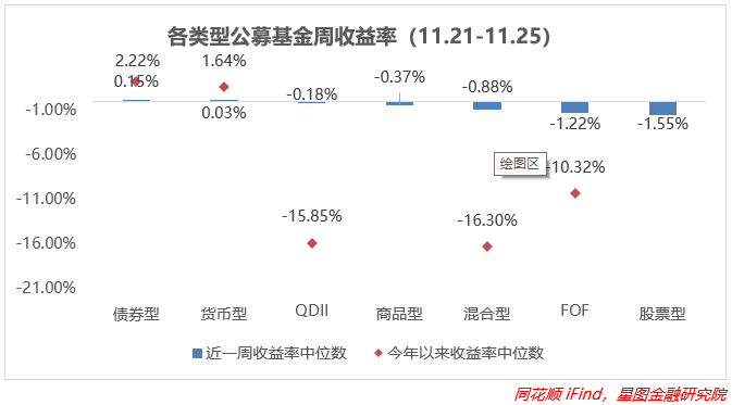 上周债券型基金收益率中位数最高,经过前期的大幅下跌,周内预期有所改善,而且多数债基关闭赎回通道,也减弱了挤兑的影响,周收益率中枢由跌转涨,环比改善也是最大的,周环比+0.62pct;股票型、FOF型基金受股票、底仓基金影响比较大,领跌所有基金,环比分别-4.26pct、-1.37pct,而QDII型基金环比降幅最大达到了-4.63pct;其余类型基金跌幅都在-1%到0%之间;货币型基金继续积累收益。 本文来自织梦