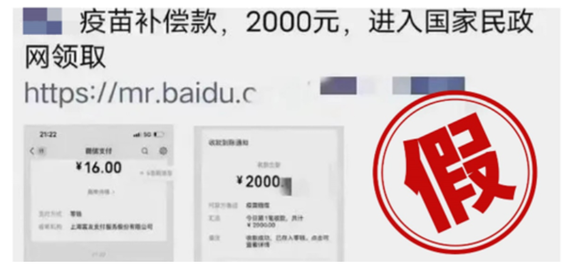 网络传言五:接种新冠疫苗可在国家民政网站领取补偿