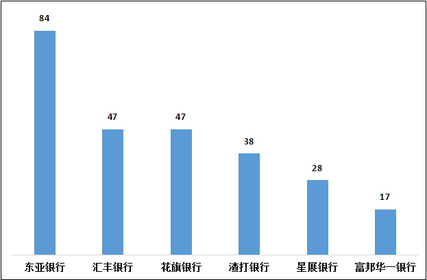 (三)外资银行的投诉数量。外国公司银行在2022年第四季度的投诉中位数为22.5件。其中,投诉最多的是:东亚银行(东亚银行)84件投诉,占总投诉的24.6%;其中47份来自汇丰,占13.8%;47宗,花旗银行,占13.8%的比例;38份来自渣打银行,占11.1%;28份来自星展银行,占8.2%;富邦华一银行有17宗,占百分之五。 织梦好,好织梦