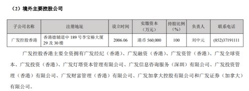 目前,广发控股香港主要全资拥有广发经纪(香港)、广发融资(香港)、广发资管(香港)、广发全球资本、广发投资(香港)、广发灯塔资本管理有限公司、广发信息咨询服务(深圳)有限公司、广发投资管理(香港)有限公司、广发财富管理(香港)有限公司、广发加拿大控股有限公司和广发证券(加拿大)有限公司。另外,广发基金旗下拥有广发国际资产管理有限公司,广发期货下设广发期货(香港);广发期货(香港)下设广发金融交易(英国),海外展业范围较广。截至发稿,广发证券股价走低,当前总市值1130亿元.
