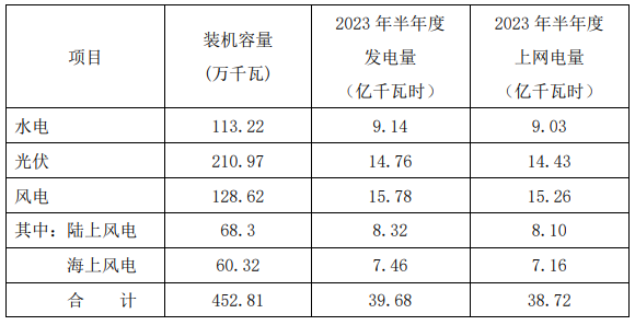 7月28日,浙江新能发布公告称,公司主营业务涉及水电、风电及光伏发电业务,根据公司初步统计,现将2023年半年度发电量完成情况披露如下: