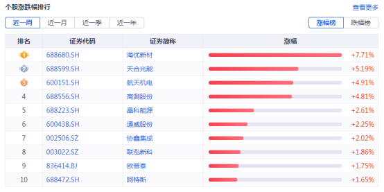 网络整理 2025-12-18 23:15证券之星光伏行业周报:中国有色金属工业协会硅业分会数据显示,本周国内硅料市场延续涨势,其中N型硅料涨幅超过P型硅料。中原证券最新观点指出,预计随着产业链上游价格逐步企稳,光伏下游价格将趋于稳定,从而带动下游装机需求。宏观方面,国家发改委等六部门文件指出,加强传统能源与新能源综合开发利用推动煤电、气电、风光电互补。企业方面,协鑫集成定增58亿加码电池片储能,爱旭股份定增60亿加码N型电池。