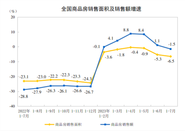 8月15日,国家统计局发布2023年1—7月份全国房地产市场基本情况统计数据。
