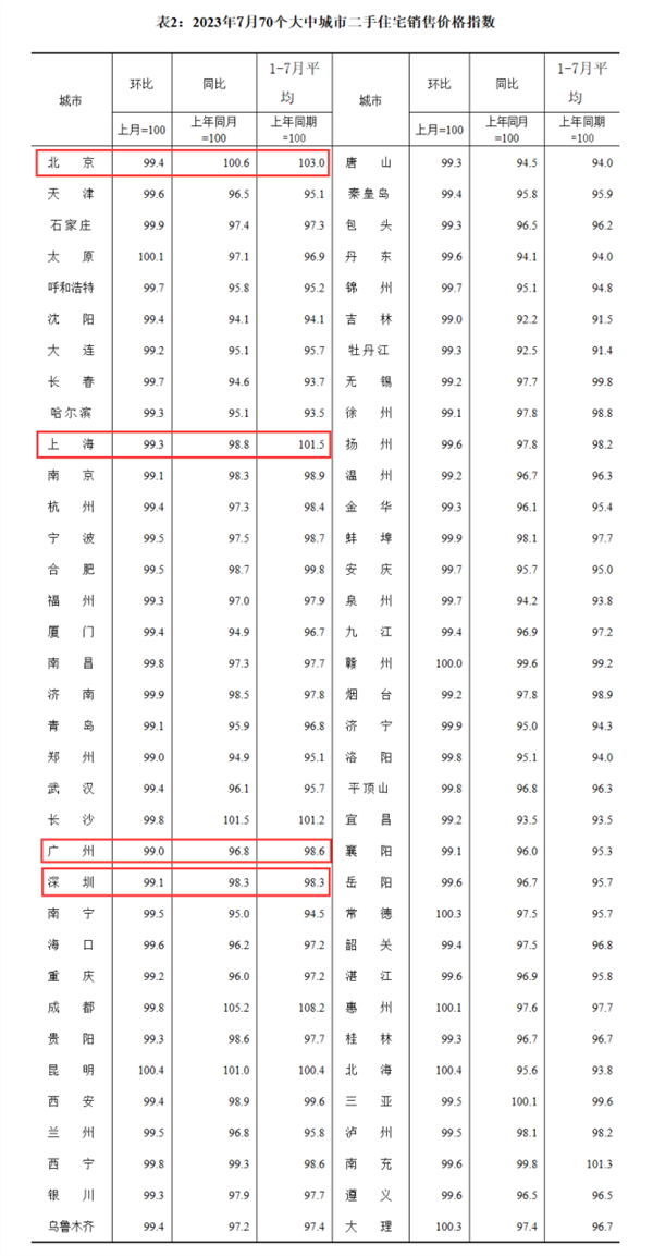一线城市的二手房价格仅北京实现上涨,同比涨0.6%,而上海、广州、深圳分别同比下跌1.2%、3.2%、1.7%。吉林、牡丹江、丹东等地的二手房价格降幅居前。