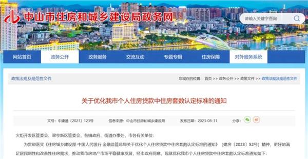 8月31日,广东中山市住建局发布《关于优化我市个人住房贷款中住房套数认定标准的通知》。 copyright dedecms