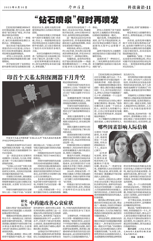 网络整理 2025-12-19 06:038月30日,《参考消息》刊发文章《研究认为中药能改善心衰症状》。