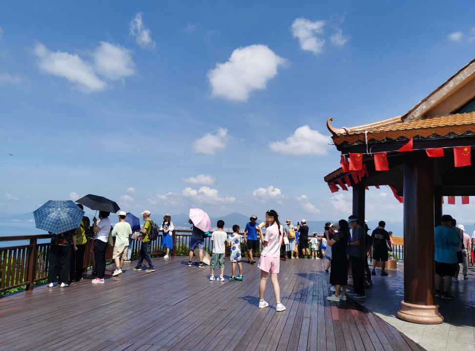 登上最高的观景平台,视野开阔可以将三亚城区景色尽收眼底,引来很多游客驻足留影,“我们如此热爱三亚”。 织梦内容管理系统