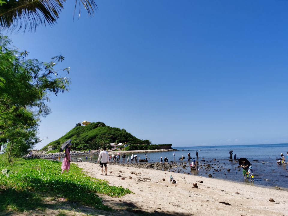 下午是大东海天然海滨浴场,其也是免费开放的4A级景区。蓝天、碧海、青山、绿椰、白沙滩,“水暖沙白滩平”使得大东海闻名海内外。大东海有专门划出来的游泳区域,游客可以租一个救生圈、买个手机防水袋去划水,体验漂浮起来的感觉,释放平日里工作的压力。