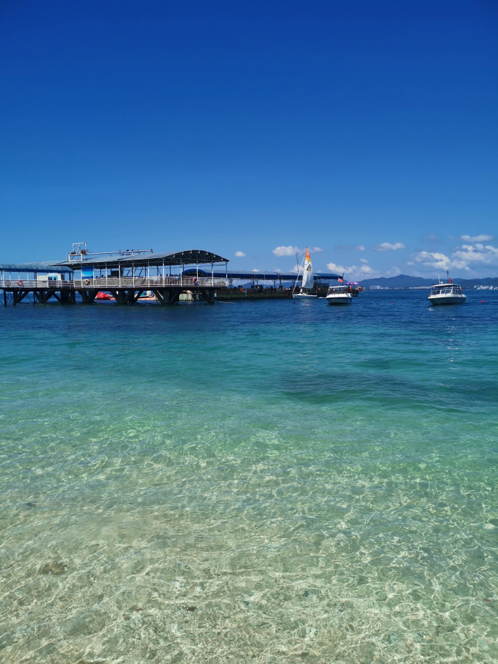 后面我们又乘坐观光车回到了西岛中心广场,有美食街、白沙滩、椰林海岸等,可以吃一碗海鲜面,坐在海边椰树下感受海风、挖沙子,或者走到海边泡在海水里,感受海浪拍打着岸边,还可以看到有人在玩海上拖伞、帆船、水上飞龙、快艇、香蕉船等项目。基金君看到岛上快到中午时也是热闹非凡。 copyright dedecms