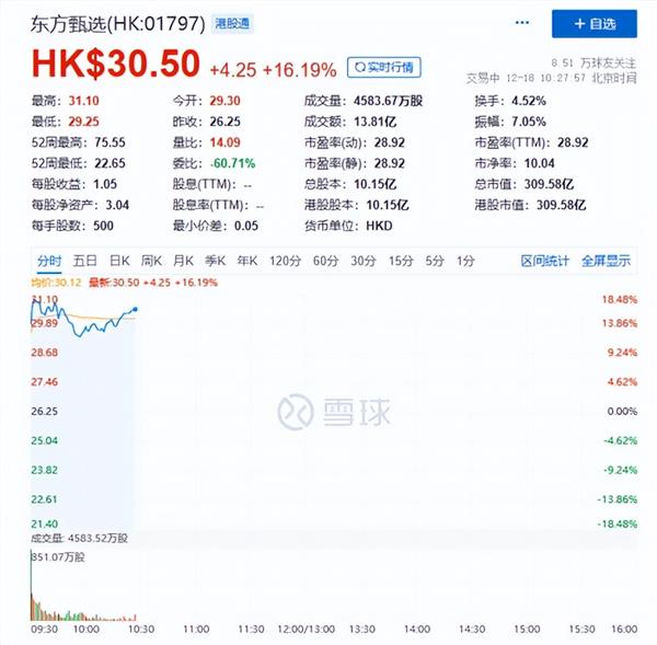 转载请标注:作文网——东方甄选,暴涨!一板块,飙升
