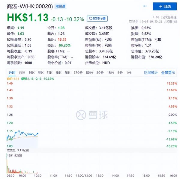 12月18日,港股商汤-W开盘跌超14%,截至发稿跌幅略有收窄,总市值跌破400亿港元。 本文来自织梦