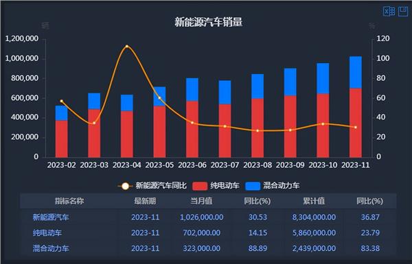 12月27日,中国电动汽车百人会副理事长兼秘书长张永伟表示,2023年中国汽车整体销量有望突破3000万辆,预计2024年势头仍将延续,汽车类零售额将突破5万亿元,其中新能源汽车突破2万亿元。2024年中国新能源汽车保有规模将接近3000万辆,其中纯电动占比约80%。预计2024年我国新能源汽车产销规模有望达到1300万辆,增速约40%,整体渗透率超过40%,乘用车领域单月渗透率有望超过50%。 织梦内容管理系统