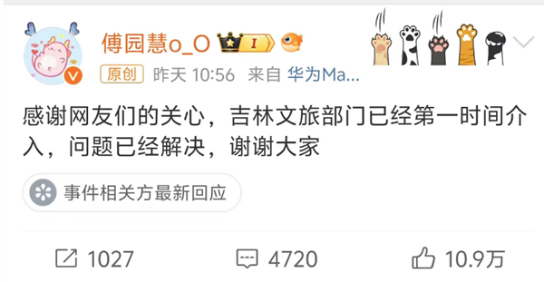2月17日10时56分,傅园慧再次发文:“感谢网友们的关心,吉林文旅部门已经第一时间介入,问题已经解决,谢谢大家 。” 本文来自织梦