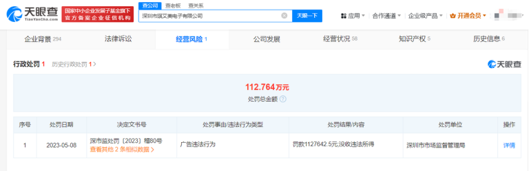 天眼查App显示,被晚会点名的兰山区和和网络文化传播工作室公司已于2023年04月04日注销。行政处罚信息显示,深圳市湘桂发科技有限公司分别于2023年10月19日、2023年11月29日因产品(商品)质量违法行为,被深圳市市场监督管理局龙岗监管局处以罚款、没收违法所得的处罚。深圳市琪艾美电子有限公司则因“广告违法行为”,被深圳市市场监督管理局罚款总计112.764万元,并没收违法所得。 本文来自织梦