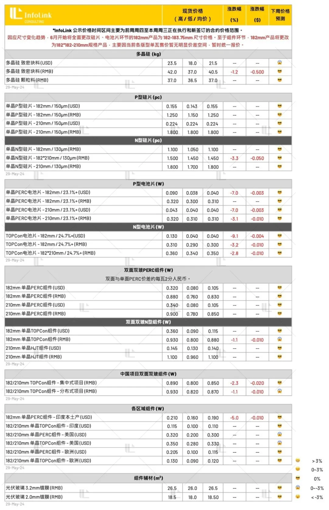 五月底供应链价格触底,项目观望情绪持续增加,厂家多数观望六月开标项目,目前国内需求也较疲弱,海外需求平淡、欧洲需求疲软,组件库存攀升,初步调查组件排产,一线厂家反馈暂时维持五月排产,部分海外厂区则受到政策波动影响、稼动率仍出现下降趋势。 内容来自dedecms