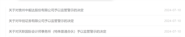 7月10日,上交所官网披露3张警示函。由于在中毅达重大资产重组事项中存在多项违规行为,中毅达、华创证券、天职国际会计师事务所(特殊普通合伙)(以下简称“天职所”)被予以监管警示。 织梦内容管理系统
