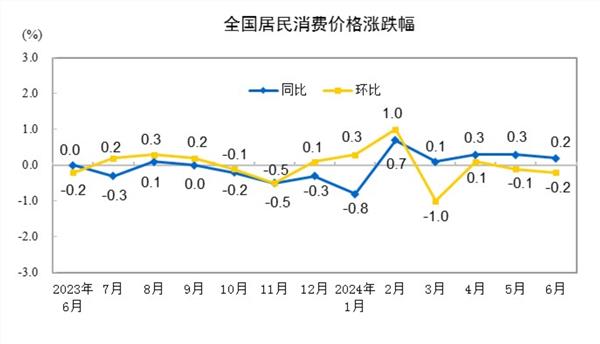 转载请标注:作文网——2024年6月份居民消费价格同比上涨0.2%