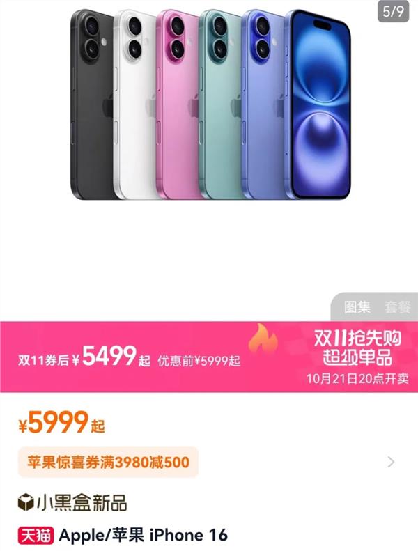 苹果官方旗舰店10月20日公布天猫双11优惠,10月21日晚间现货开卖,该店铺iPhone 16系列最高优惠1600元。iPhone 16、iPhone 16 Plus、iPhone 16 Pro和iPhone 16 Pro Max原价分别为5999元起、6999元起、7999元起、9999元起,双11券后价则分别为5499元起、6499元起、7499元起和9499元起,即该系列每款手机均优惠500元。此外,苹果手机以旧换新至高补贴1100元,叠加后购买iPhone 16系列手机至高优惠1600元。 织梦好,好织梦