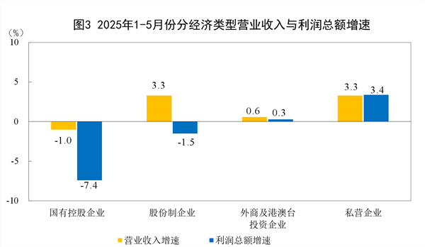 1—5月份,规模以上工业企业中,国有控股企业实现利润总额8709.5亿元,同比下降7.4%;股份制企业实现利润总额20170.7亿元,下降1.5%;外商及港澳台投资企业实现利润总额6856.8亿元,增长0.3%;私营企业实现利润总额7592.5亿元,增长3.4%。 内容来自dedecms