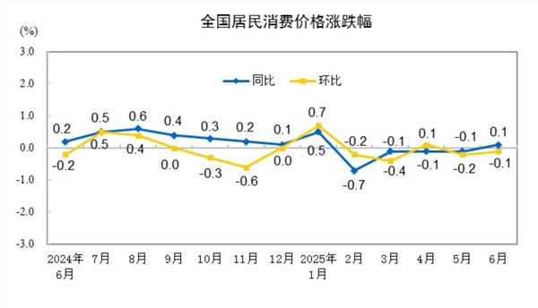 2025年6月份居民消费价格同比上涨0.1%