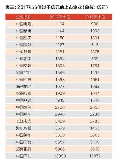 2016年到2017年,市值变化较大的上市公司有如下几家:中国铝业,市值从462亿元到886亿元,几乎翻了一番;国航从613亿元到1227亿元,实现翻番;五矿资本从64亿元,涨到442亿元,增长近7倍;中油资本从53亿元到1354亿元,增长超过20倍。 内容来自dedecms