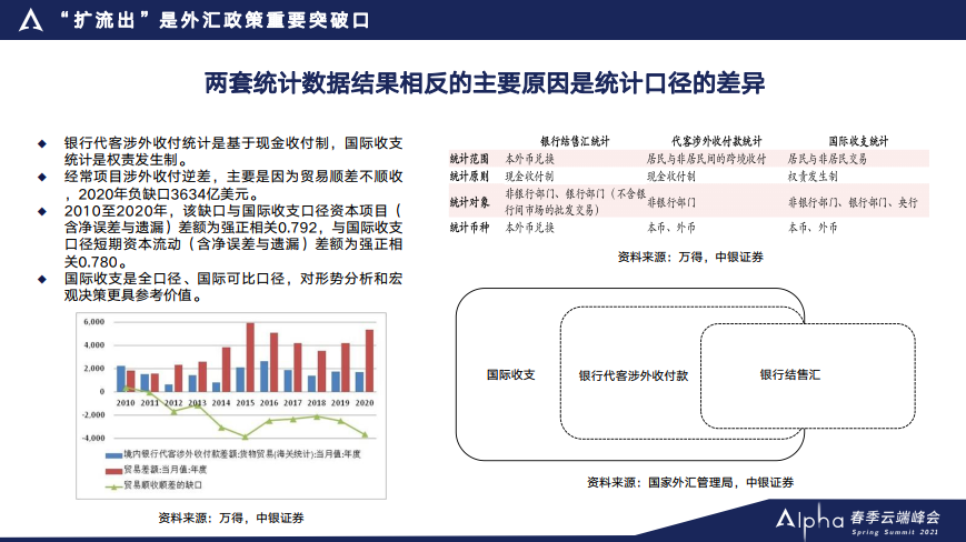 为什么我们从两套数据对人民币升值压力的判断会得出不同的判断?很重要的原因是这两套数据的统计口径不一样。银行代客跨境收付的统计或者涉外收付的统计,是基于现金收付制,在银行办理业务的时候有现金收入或者支出,那么银行在办理业务的时候就会采集数据,这是国际收支数据统计的一个重要来源。 dedecms.com