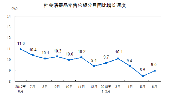 网络整理 2021-03-23 09:372018年6月份社会消费品零售总额增长9.0% copyright dedecms