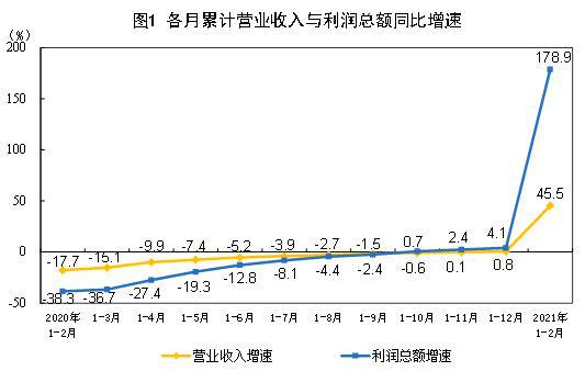 2021年1—2月份,规模以上工业企业实现利润总额11140.1亿元,同比增长1.79倍,比2019年1—2月份增长72.1%,两年平均增长31.2%。 织梦内容管理系统