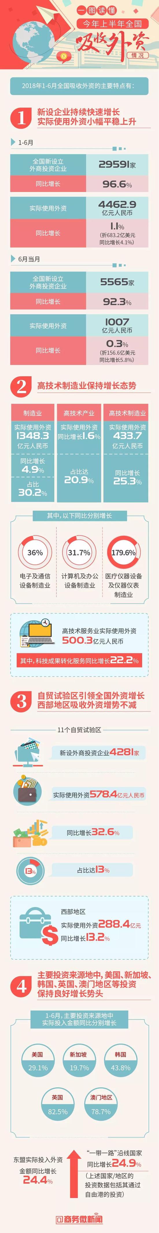 网络整理 2021-03-23 09:37一图读懂 | 2018年上半年全国吸收外资情况 本文来自织梦