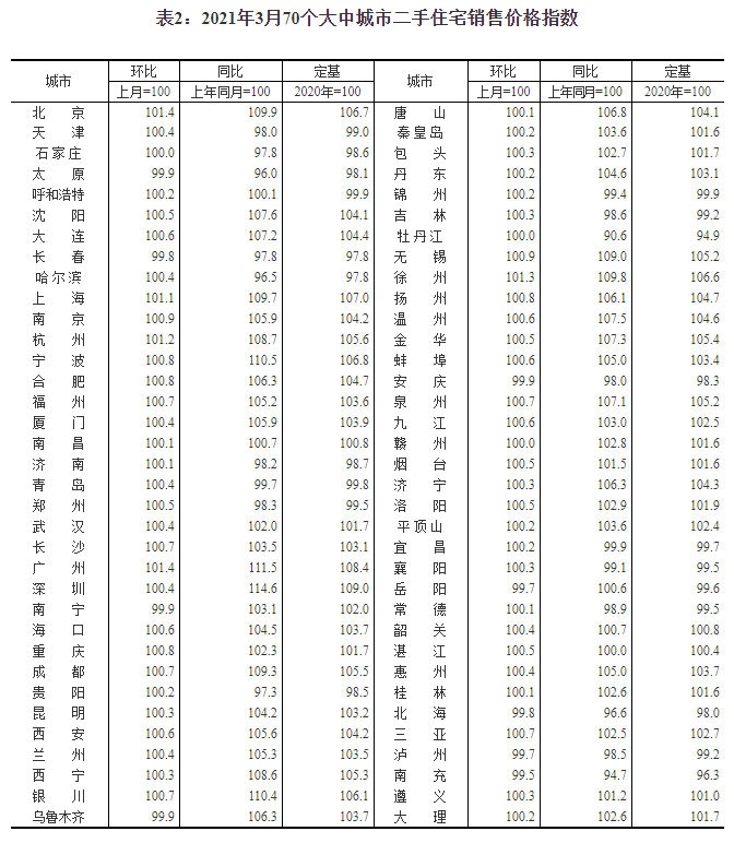 国家统计局城市司首席统计师绳国庆解读2021年3月份商品住宅销售价格变动情况统计数据称: