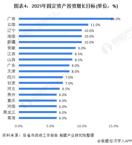 固定资产投资是经济增长三驾马车之一,是促进地区经济增长,调整产业结构的关键指标,也是各地区政府的重要关注领域。2021年代表性地区政府工作报告中,广西、云南、吉林、辽宁、海南、新疆六省份目标投资增长超过10%,其中广西2021年固定资产投资目标最高为15%。 织梦好,好织梦
