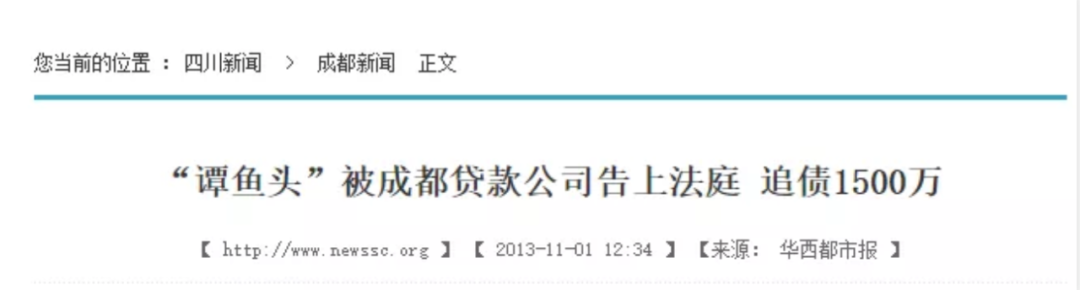 如同多米诺骨牌,第一块倒下的,用谭长安的话来说,是一个“豆腐块”大小的消息:2013年,四川媒体发布消息称,一家小贷公司将谭鱼头投资公司和谭长安告上法庭,要求其立即偿还借款本金1500万元及利息220余万元。 织梦好,好织梦