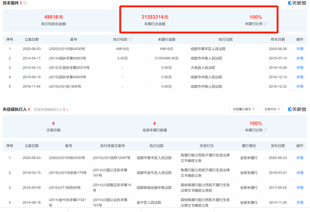 而如今,天眼查显示,谭长安因没有可执行财产,已有5起案件被暂时中止执行,而这5起案件的涉及金额超3100万元,未履行比例为100%。 织梦好,好织梦