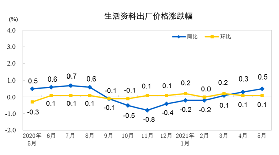 2021年5月份,全国工业生产者出厂价格同比上涨9.0%,环比上涨1.6%;工业生产者购进价格同比上涨12.5%,环比上涨1.9%。1—5月平均,工业生产者出厂价格比去年同期上涨4.4%,工业生产者购进价格上涨5.9%。