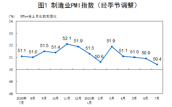 统计局:7月官方制造业PMI为50.4%