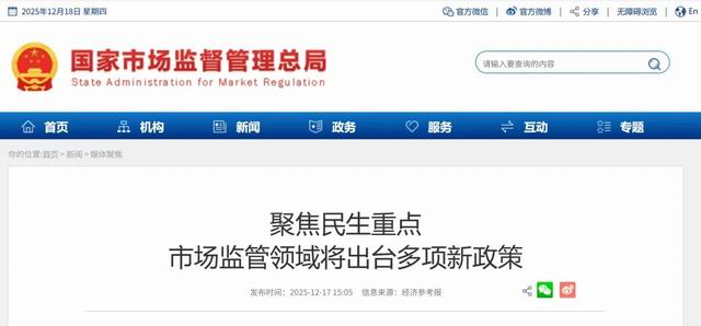 网络整理 2026-01-05 05:1012月16日,在市场监管总局四季度新闻发布会上,记者获悉,围绕规范平台经济、强化食品安全、加强反垄断反不正当竞争、加强和保障纤维制品质量安全监管等多个民生重点领域,市场监管总局将出台多项新的政策文件。
