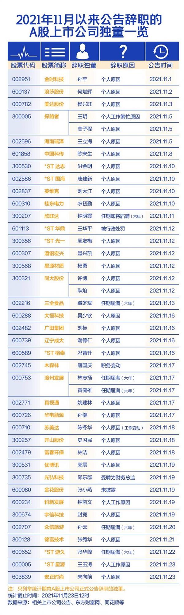 23天公布41份独董辞呈