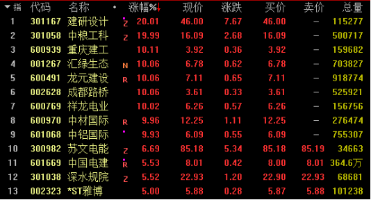 网络整理 2026-01-05 06:56今日基建板块大幅走高,截止发稿,建研设计、重庆建工、龙元建设、成都路桥、中材国际、中铝国际涨停;中国电建、深水规院等个股涨幅超5%。
