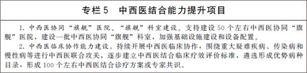 5.推进中医药领域综合改革。建设10个左右国家中医药综合改革示范区,鼓励在服务模式、产业发展、质量监管等方面先行先试,打造中医药事业和产业高质量发展高地。开展全国基层中医药工作示范市(县)创建工作。开展医疗、医保、医药联动促进中医药传承创新发展试点,发扬基层首创精神,完善更好发挥中医药特色优势的医改政策。